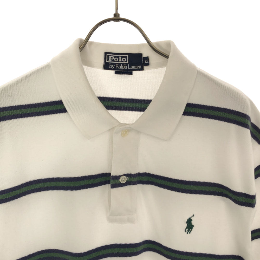 ポロバイラルフローレン ボーダー 半袖 ポロシャツ LL ホワイト Polo by Ralph Lauren 鹿の子地 メンズ