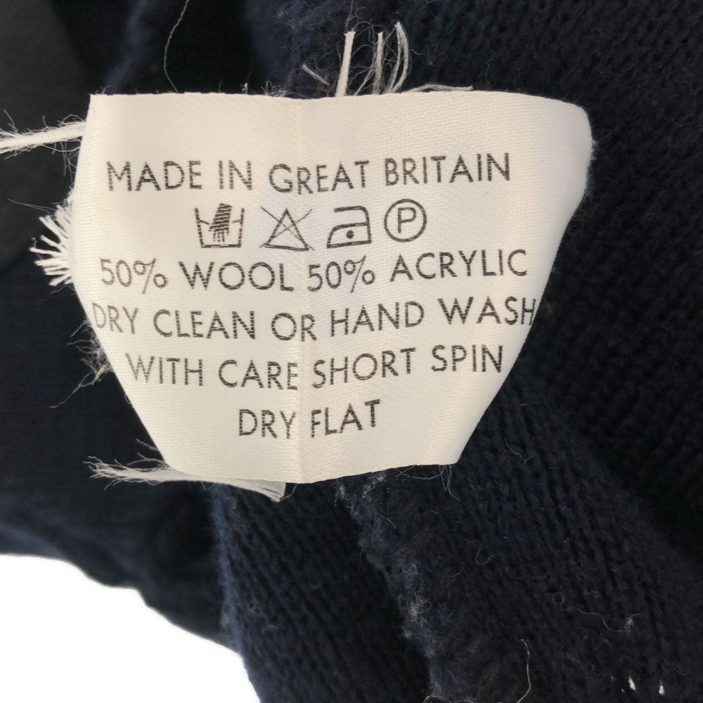 Burberrys バーバリーズ 80s 90s 英国製 ウールブレンド 長袖 コンバットニット セーター 134/140 ネイビー ニット エルボーパッチ オールド キッズ