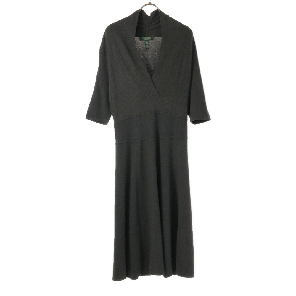 LAUREN RALPH LAUREN ローレンラルフローレン 7分袖 ニット ロングワンピース S グレー レディース