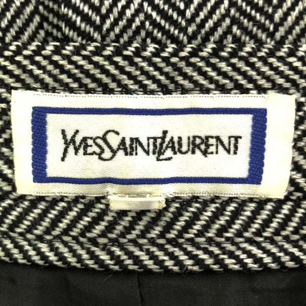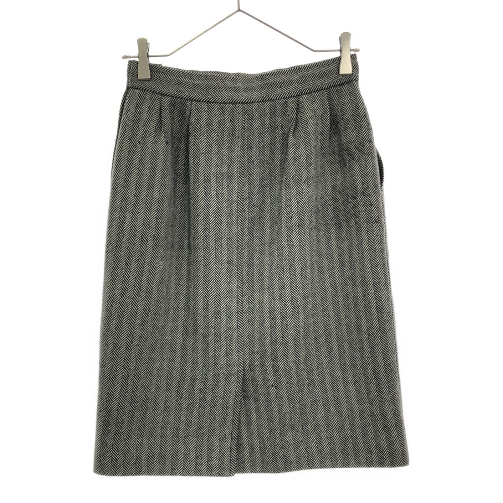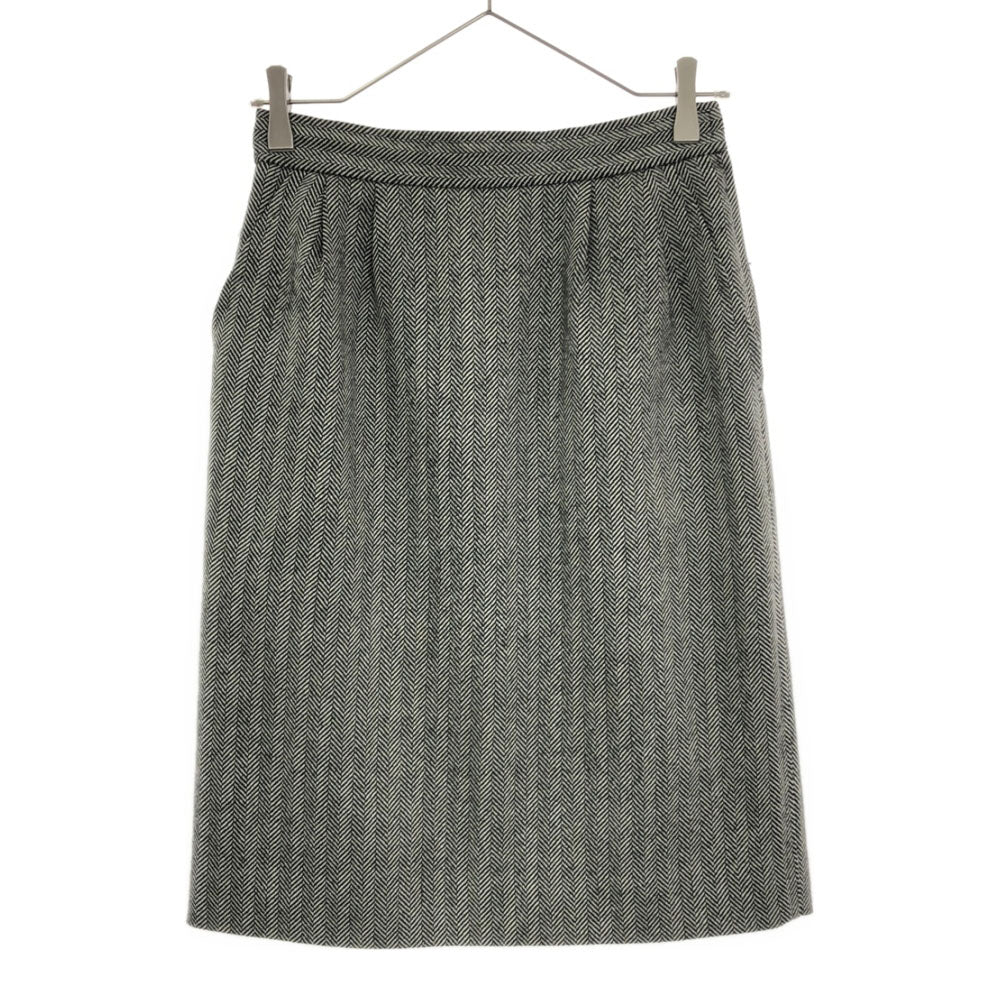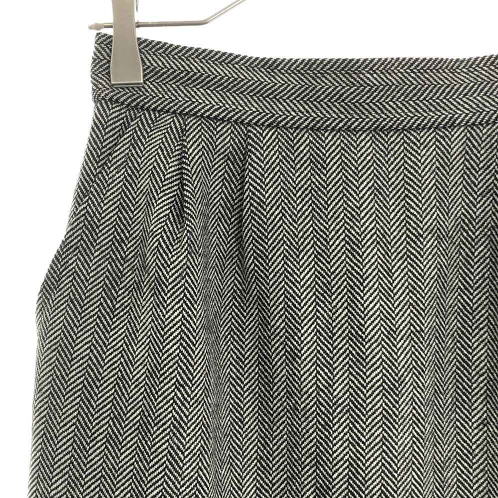 YVES SAINT LAURENT イヴサンローラン 90s ウール ヘリンボーン ミディ丈 タイトスカート L ブラック系 バックジップ オールド ヴィンテージ レディース