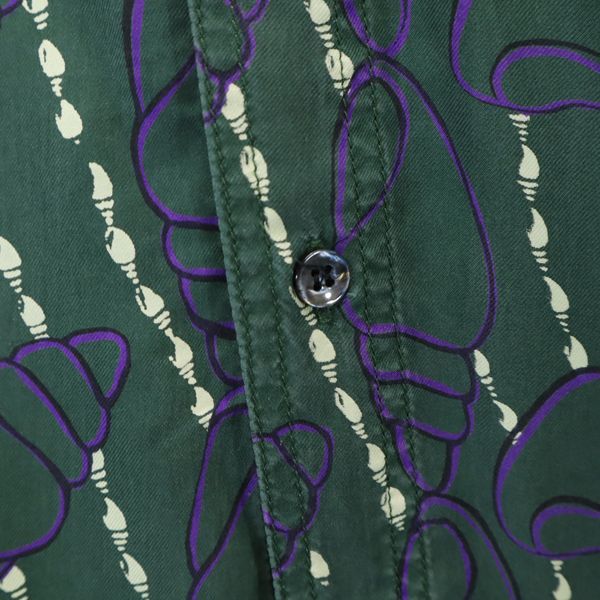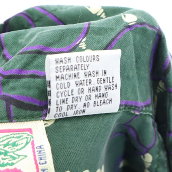 HONOLULU USA ホノルル シルク 総柄 シェル プリント 半袖 アロハシャツ S グリーン メンズ