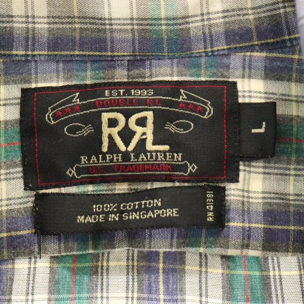 RRL ダブルアールエル 90s 初期タグ 赤三ツ星 チェック柄 半袖 シャツ L 緑×青×グレー RALPH LAUREN メンズ