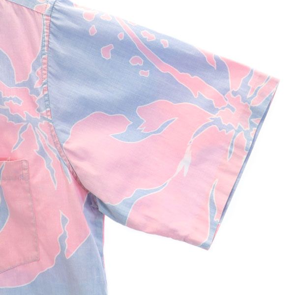 reyn spooner レインスプーナー 70s 金タグ リバースプリント ハイビスカス柄 半袖 アロハシャツ M 水色×ピンク メンズ