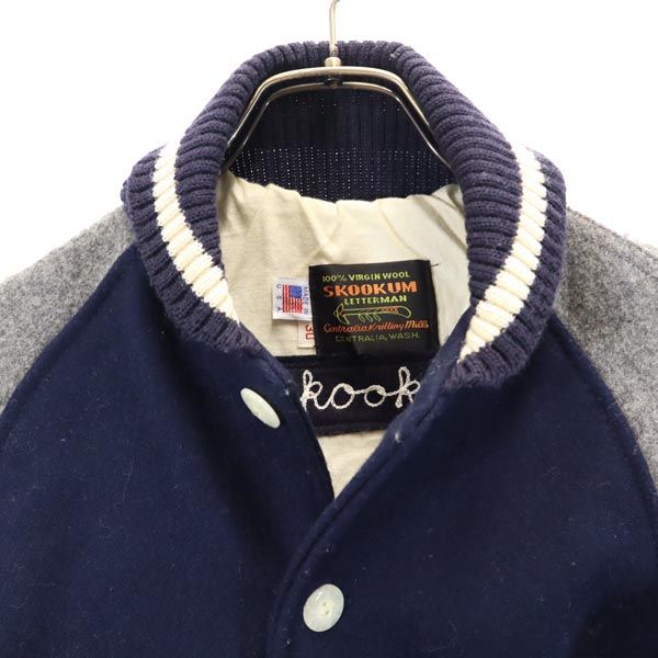 SKOOKUM スクーカム USA製 ボタン スタジャン 30 ネイビー×グレー ショールカラー メンズ