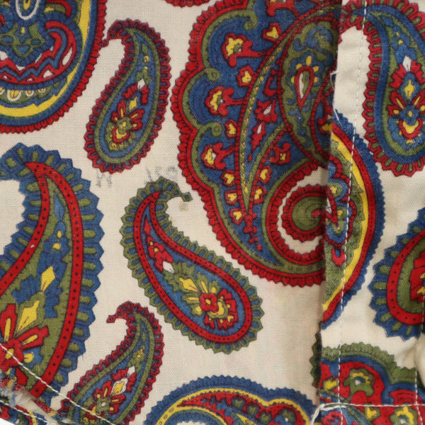 | 詳細 | 70年代の総柄ペイズリーの半袖シャツになります。裾に汚れとスタンプがあります。破れ等の目立ったダメージはございません。古着にご理解の上ご購入をお願いいたします。 |