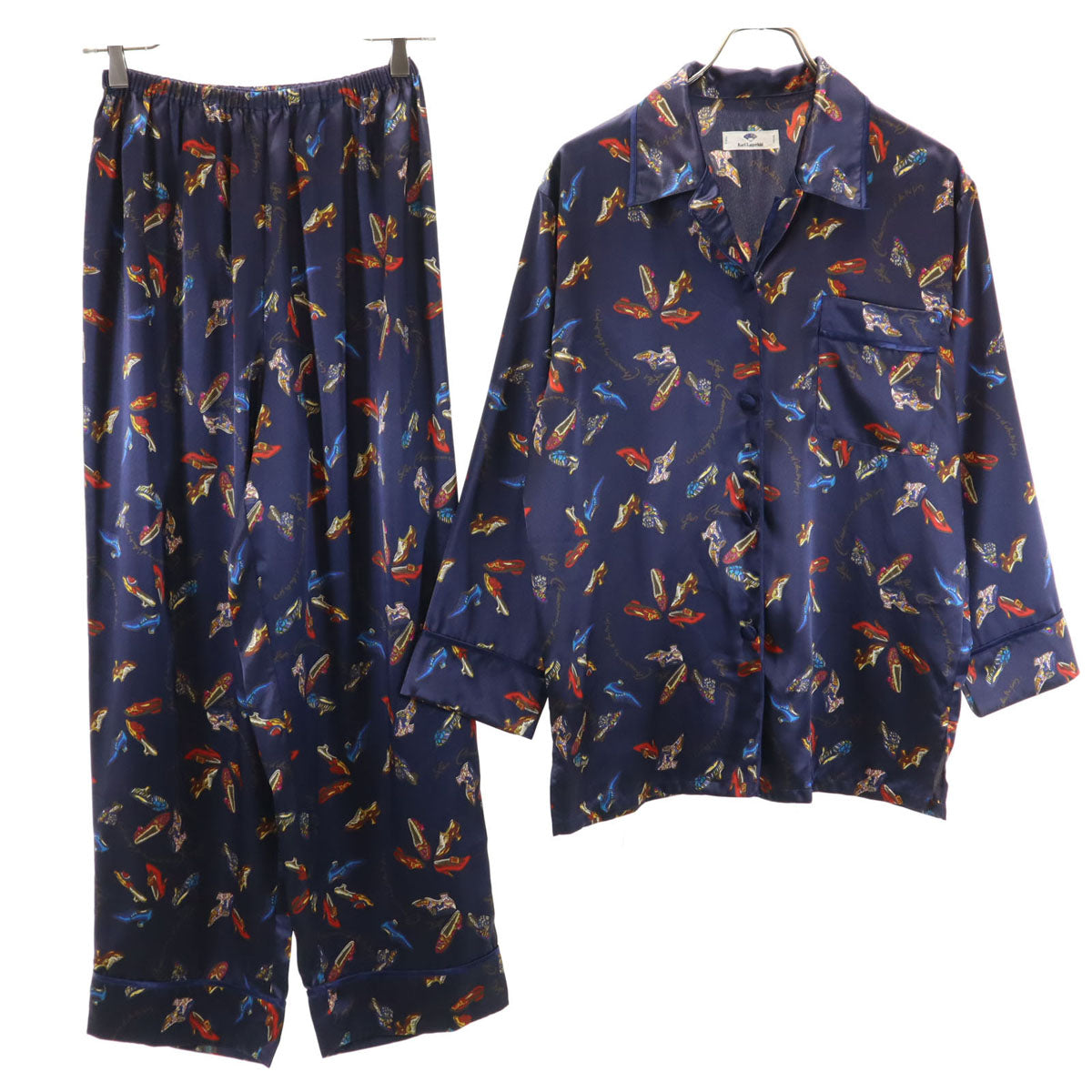KARL LAGERFELD カールラガーフェルド 日本製 ヒール柄 ルームウェア 上下 セットアップ M ネイビー パジャマ レディース