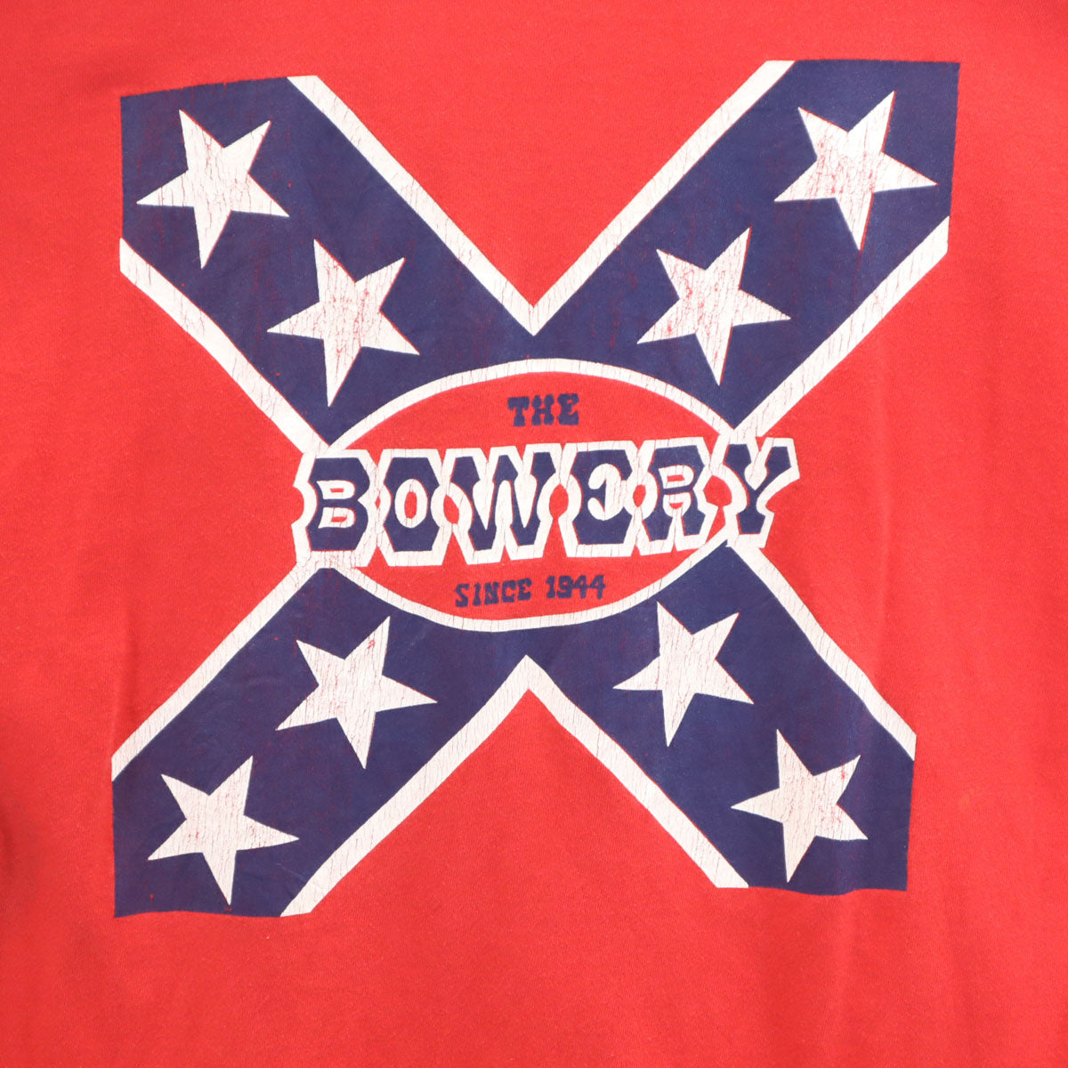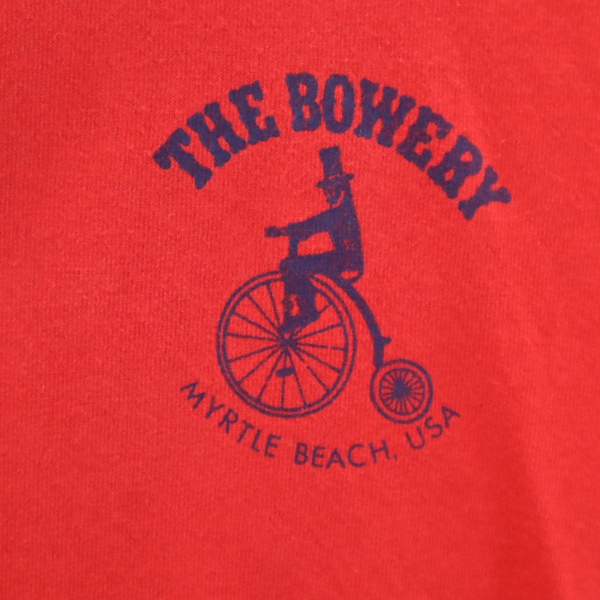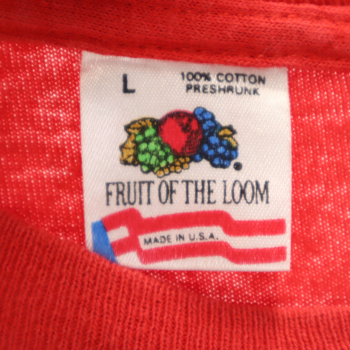 FRUIT OF THE LOOM フルーツオブザルーム 90s USA製 オールド バックプリント BOWERY 半袖 Tシャツ L レッド シングルステッチ メンズ