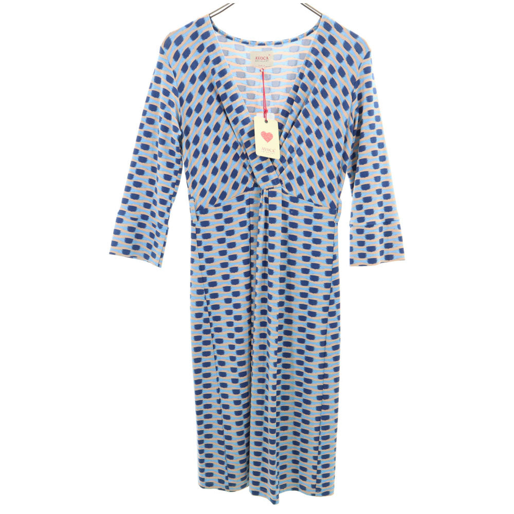 未使用 AVOCA アヴォカ 7分袖 ロングワンピース 38 ブルー タグ付き レディース