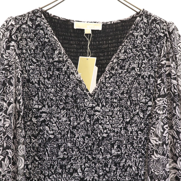 未使用 MICHAEL MICHAEL KORS マイケルマイケルコース 花柄 長袖 シアースリーブ ロングワンピース XS ブラック シースルー レディース