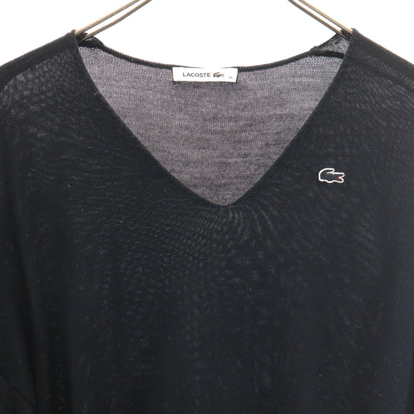 LACOSTE ラコステ 日本製 ウール100% 長袖 Vネック ワンピース 36 ブラック レディース