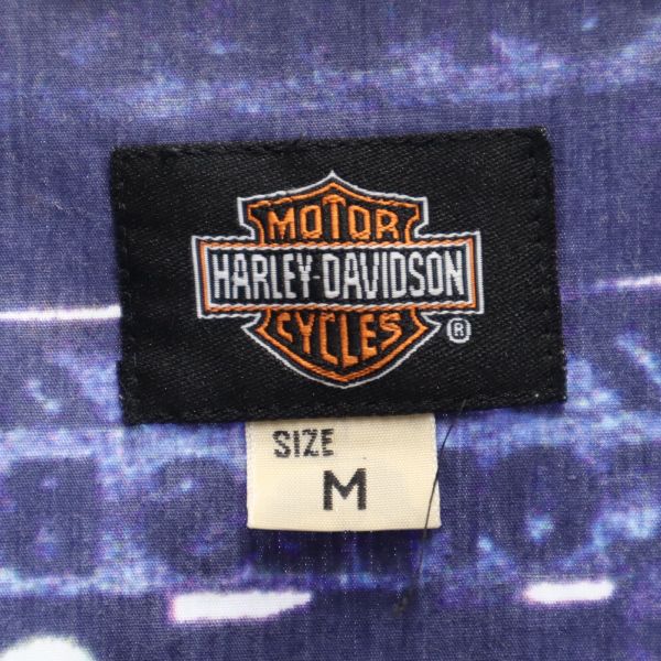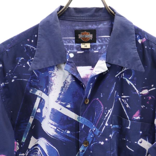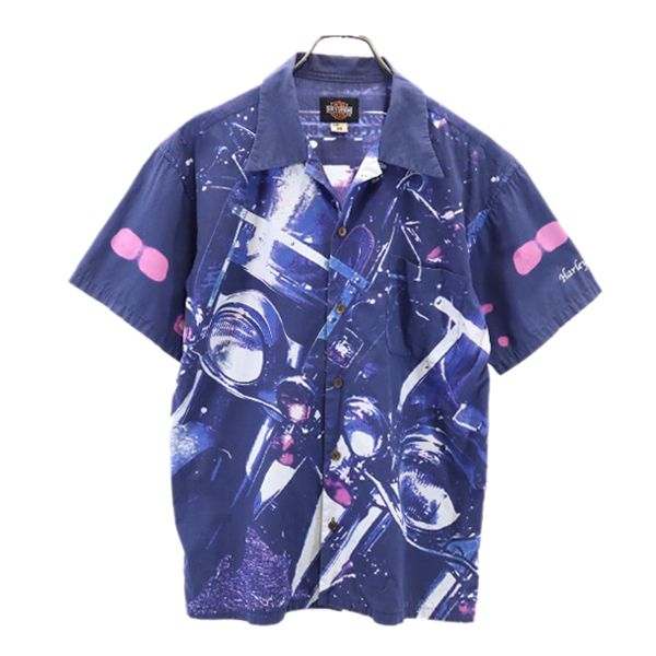 HARLEY DAVIDSON ハーレーダビッドソン 総柄 半袖 オープンカラーシャツ M ネイビー メンズ