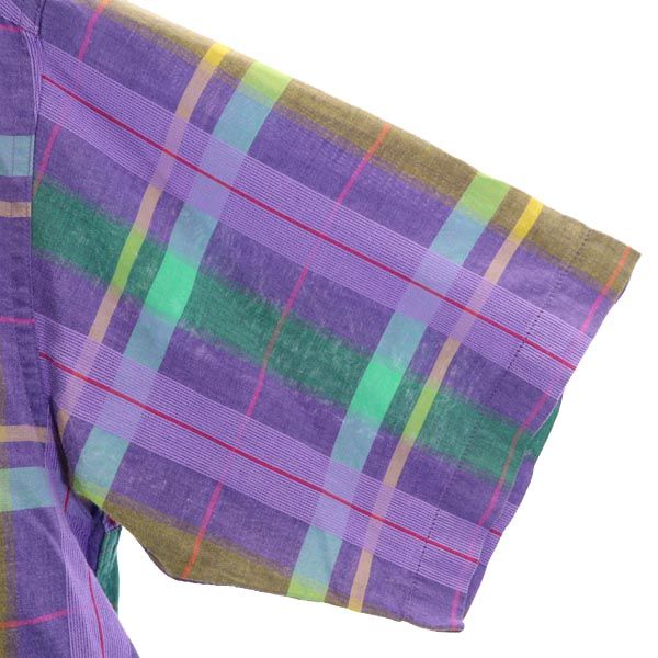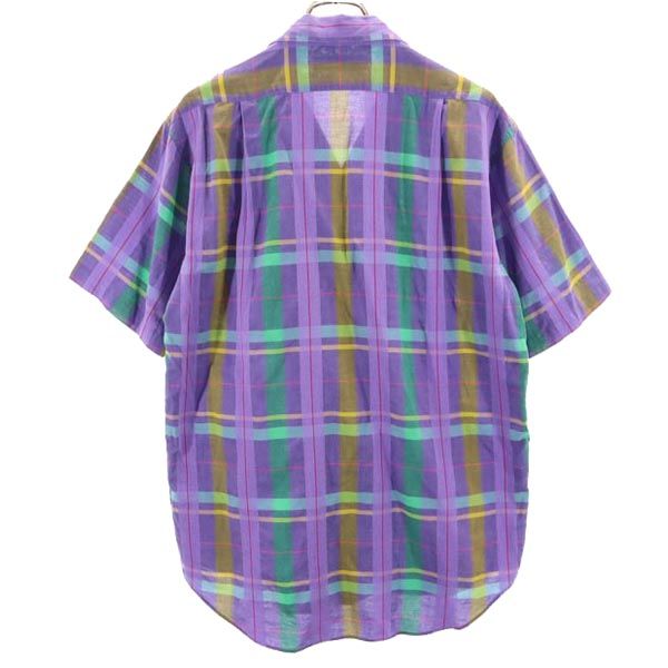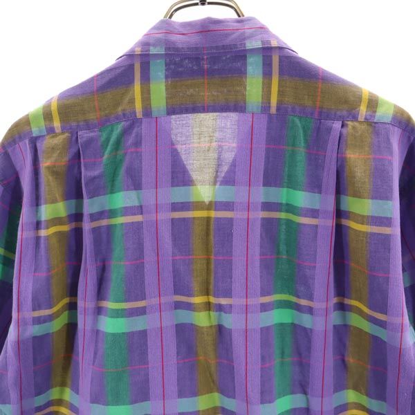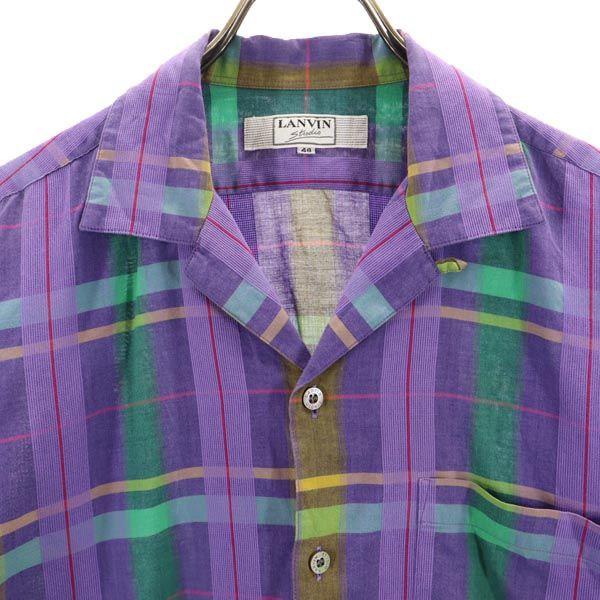 LANVIN STUDIO ランバンスタジオ チェック柄 半袖 オープンカラーシャツ 48 紫系 メンズ