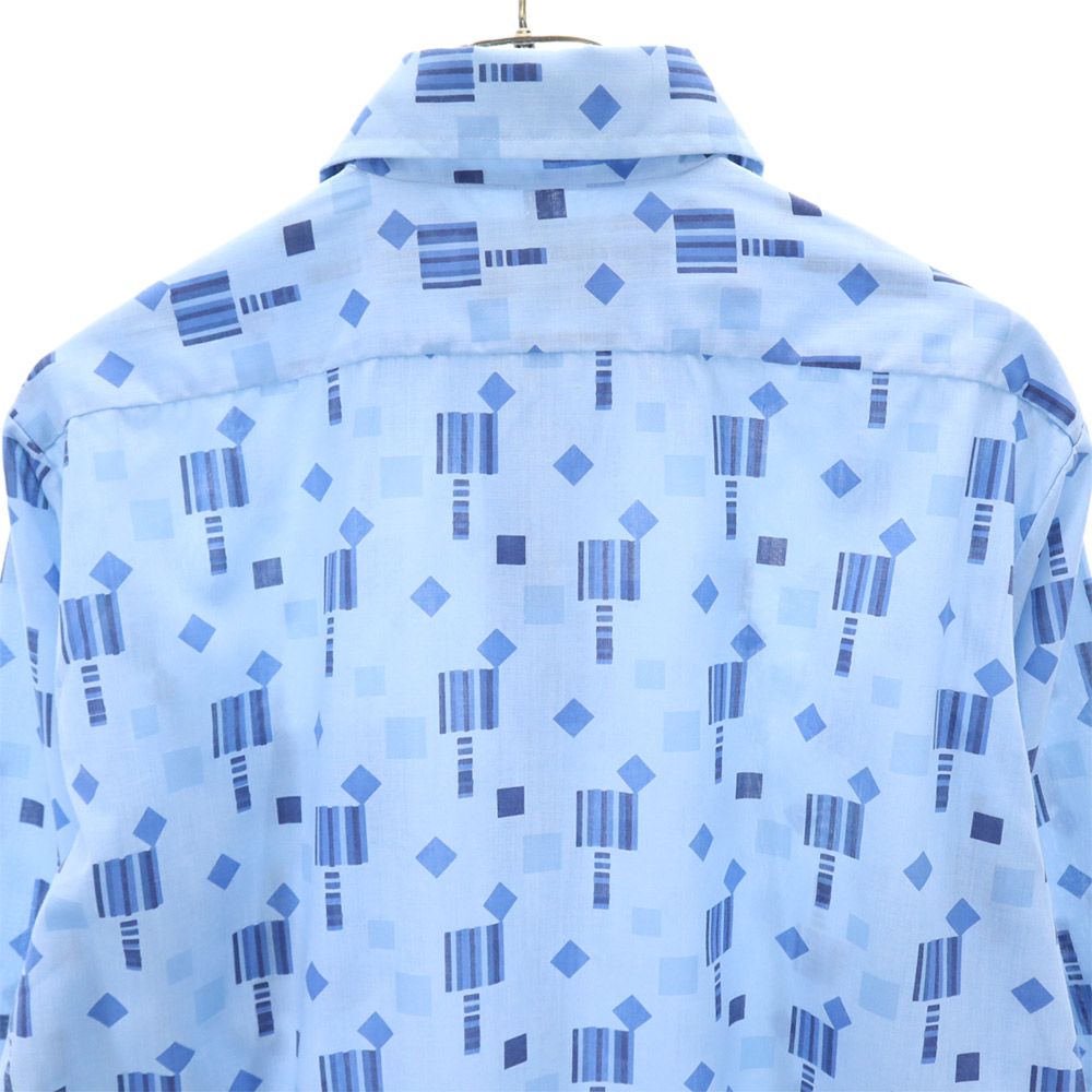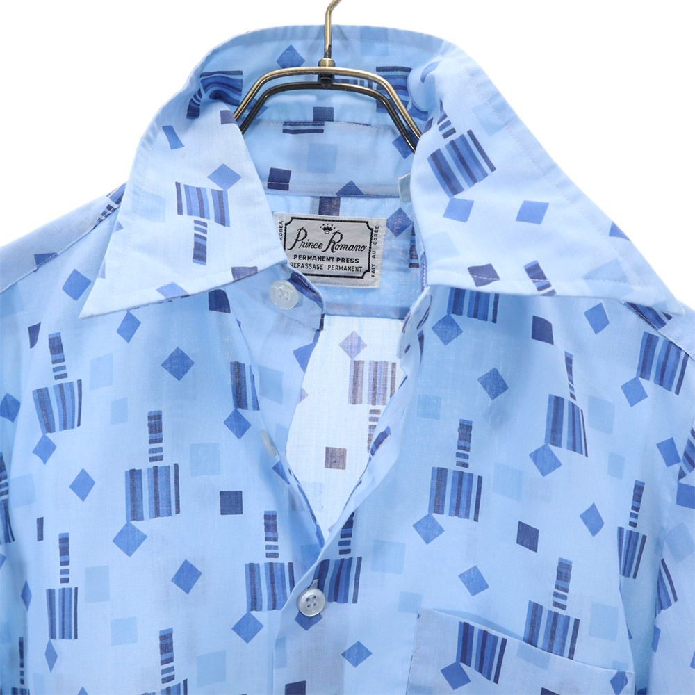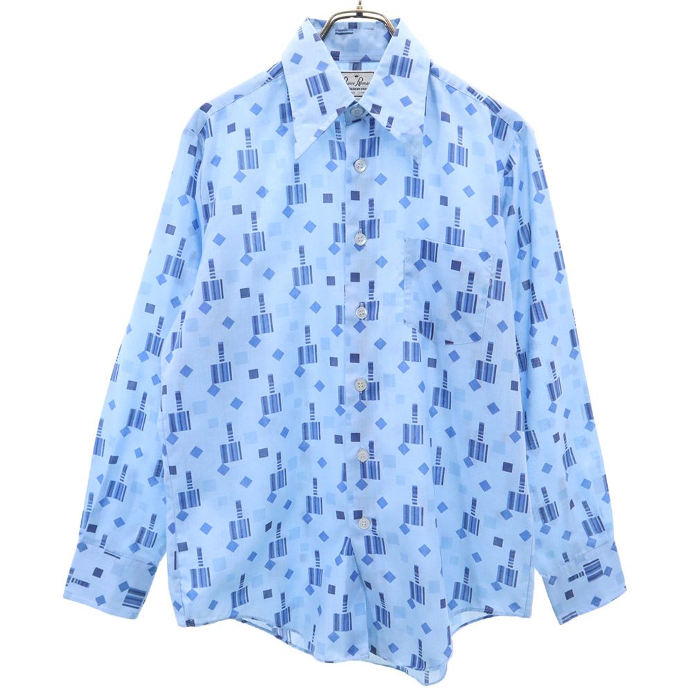 Prince Romano 70s 80s ヴィンテージ 総柄 長袖 シャツ ブルー系 メンズ
