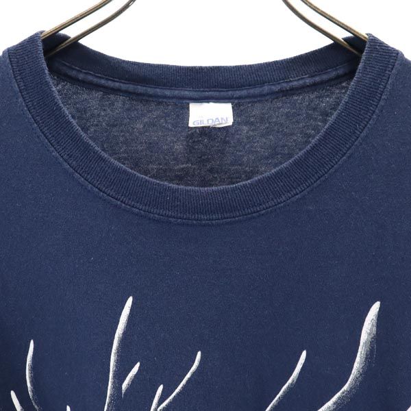 ギルダン アニマル プリント 半袖 Tシャツ 紺 GILDAN メンズ