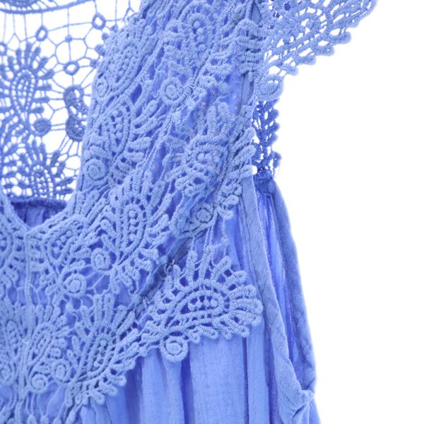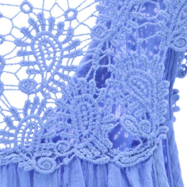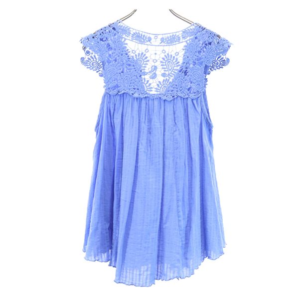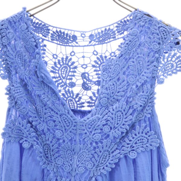 T・H COMPANY ノースリーブ レース切替 ブラウス M-L ブルー T・H COMPANY レディース