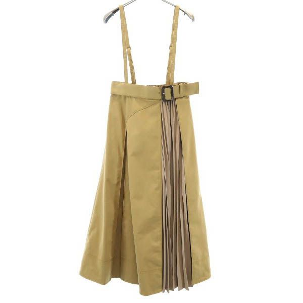 未使用 Mystrada マイストラーダ ロング丈 切替 プリーツ トレンチスカート 38 カーキ系 バックジップ レディース