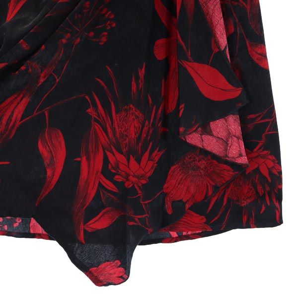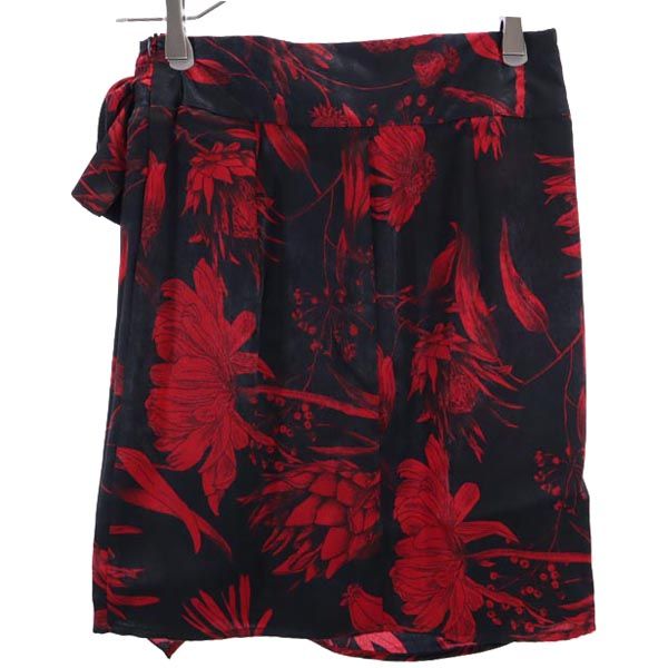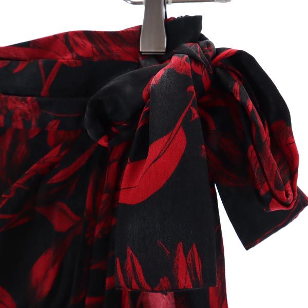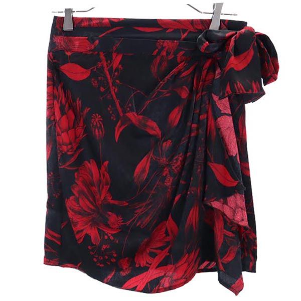 未使用 ザラ プリント ミニ丈 タイドディテール付 スカート XS 黒×赤 ZARA レディース