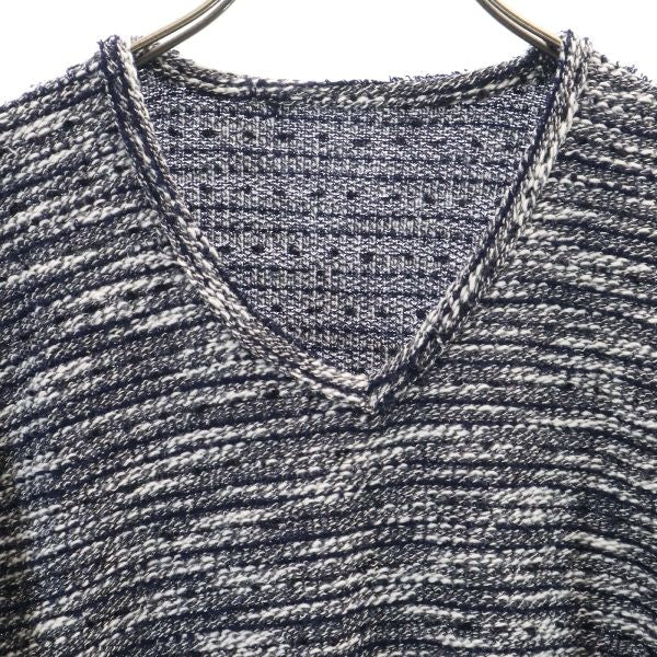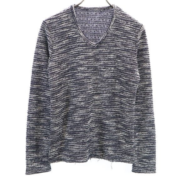総柄 長袖 Vネック セーター L 紺×白 タグカット品 メンズ
