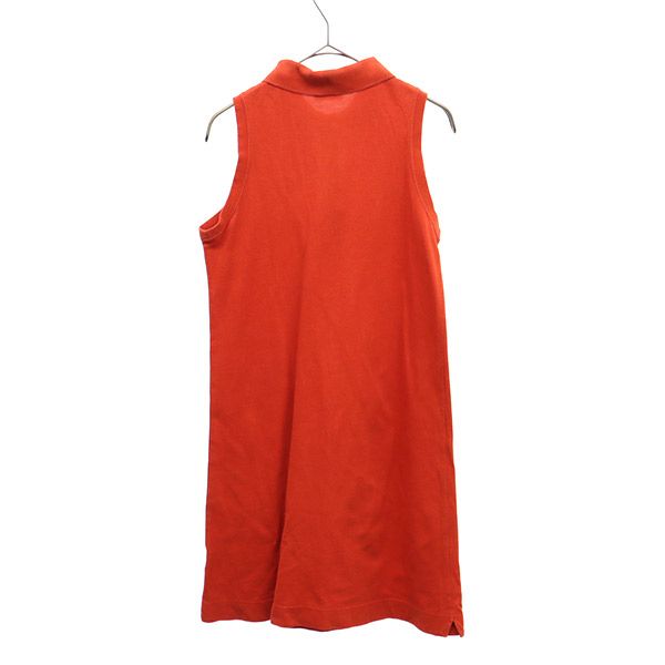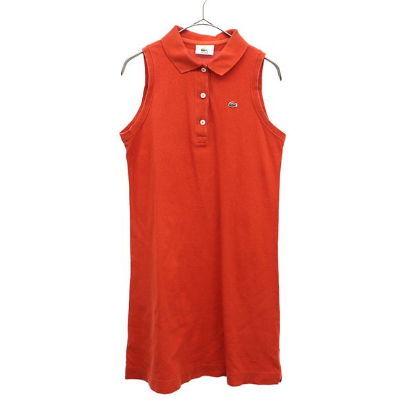 ラコステ 日本製 ワンポイントワッペン ノースリーブ ポロ ワンピース 38 オレンジ LACOSTE 鹿の子地 レディース