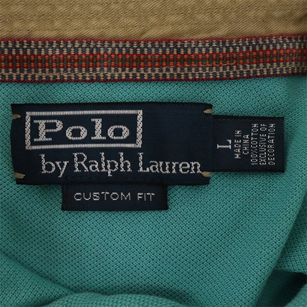 POLO RALPH LAUREN ポロラルフローレン プリント 半袖 ダメージ加工 ポロシャツ L グリーン 鹿の子 メンズ