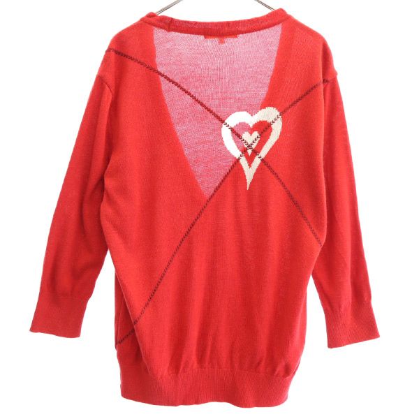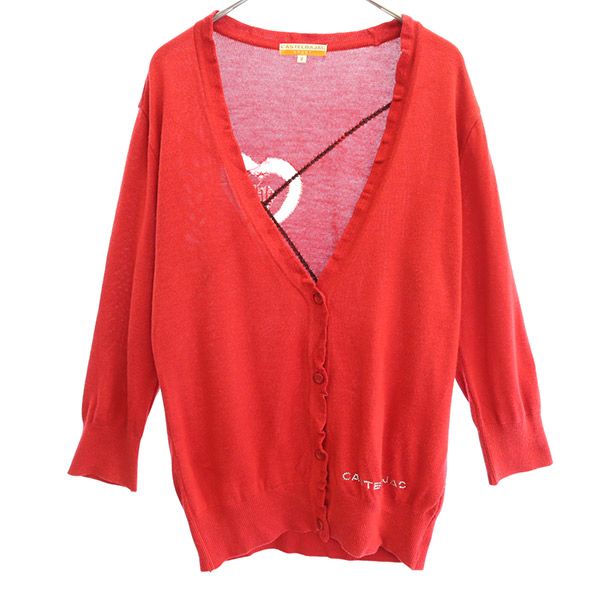 カステルバジャック 総柄 長袖 ニットカーディガン 2 レッド×ホワイト JC de CASTELBAJAC レディース